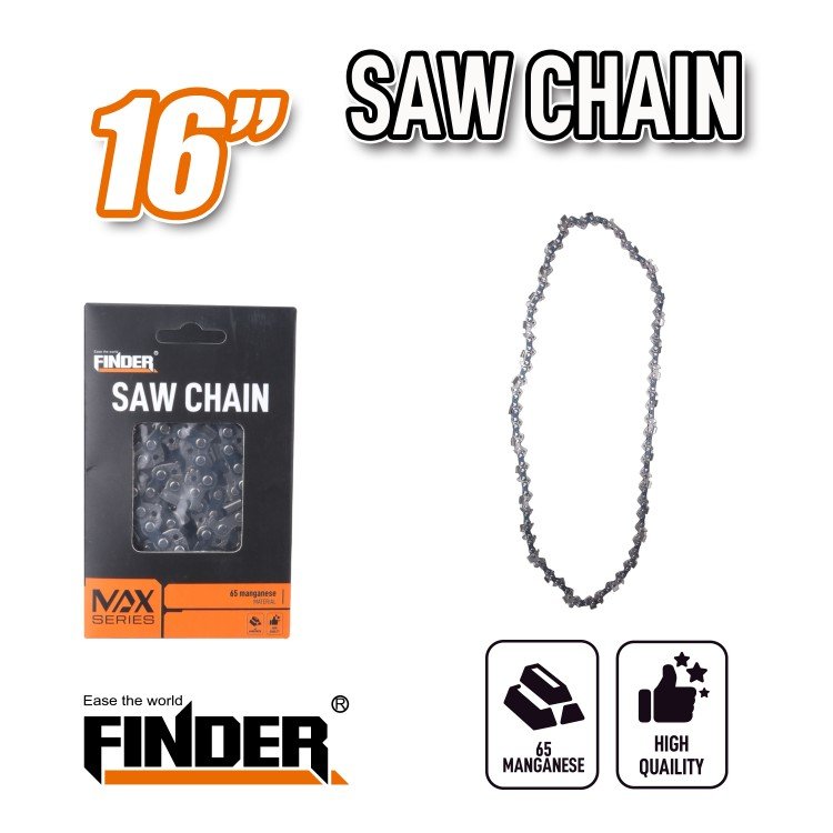 Ανταλλακτική αλυσίδα για αλυσοπρίονο από την σειρά Max Series της Finder, υψηλής ποιότητας και αντοχής, μεγέθους 16″, με 64 συνδέσμους.