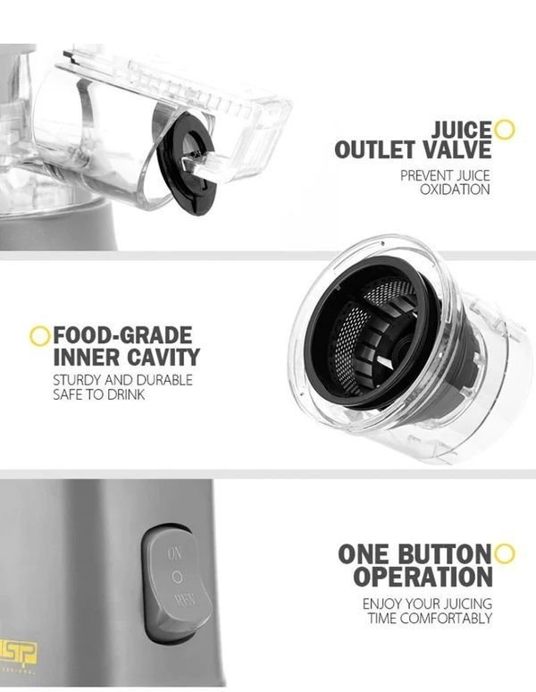 Ηλεκτρικός αποχυμωτής – Slow juicer της DSP, εύχρηστος και εργονομικός, θα γίνει ο αγαπημένος σας καθημερινός οδηγός για μία υγιεινή ζωή, καθώς θα έχετε εύκολα και γρήγορα λαχταριστούς χυμούς φρούτων και λαχανικών.