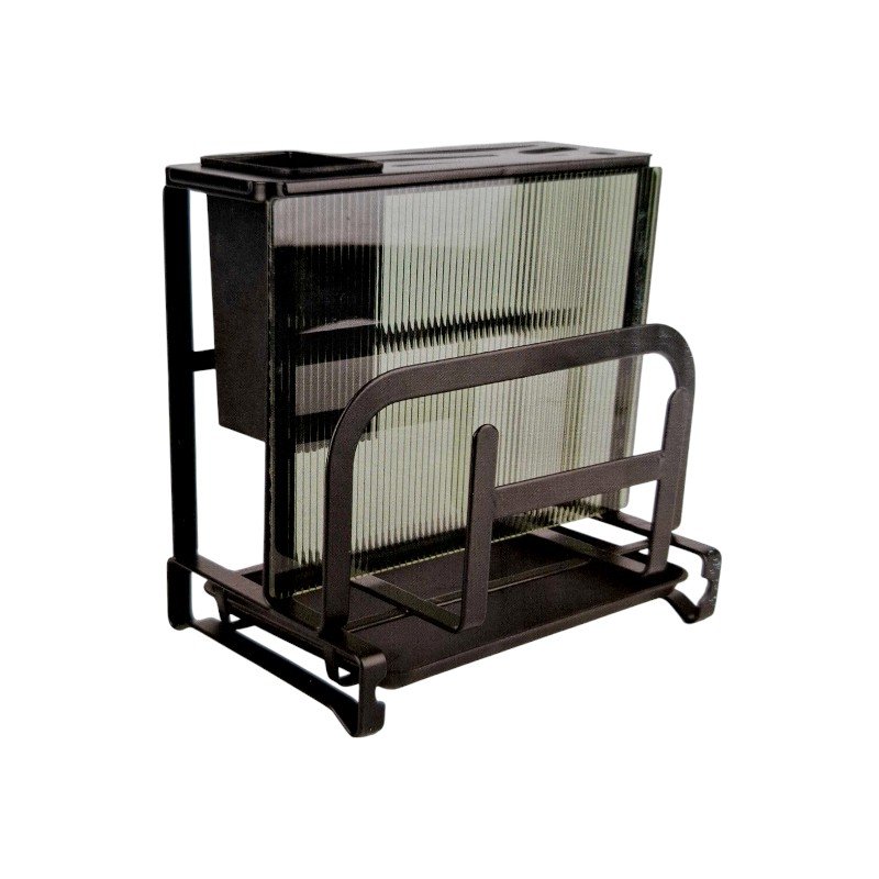 Βάση οργάνωσης σκευών κουζίνας, μεταλλική, με πρακτικές θέσεις για καπάκι κατσαρόλας, βάση κοπής και μαχαιροπίρουνα.