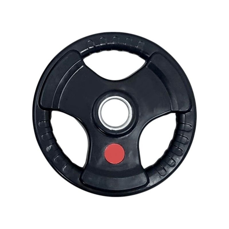 Δίσκος-πιάτο βάρους γυμναστικής με ελαστική αντιολισθητική επένδυση και εργονομικές λαβές, ιδανικό για χρήση πάνω σε μπάρα άρσης ή ως ελεύθερο βάρος σε πολλαπλές ασκήσεις.