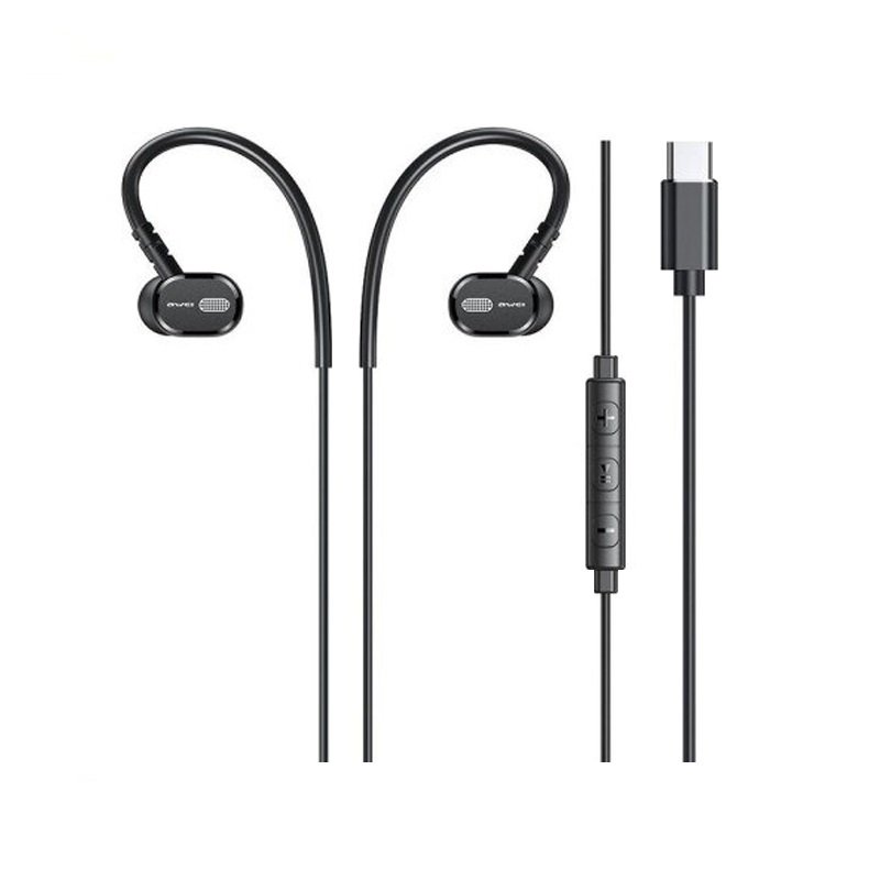 Ενσύρματα ακουστικά AWEI Ear-Hook με σύνδεση Type-C, με υψηλής ποιότητας ήχο surround και εργονομικό σχεδιασμό με καλώδιο που περνιέται πίσω από το αυτί για άνετη εφαρμογή και απόλυτη σταθερότητα.