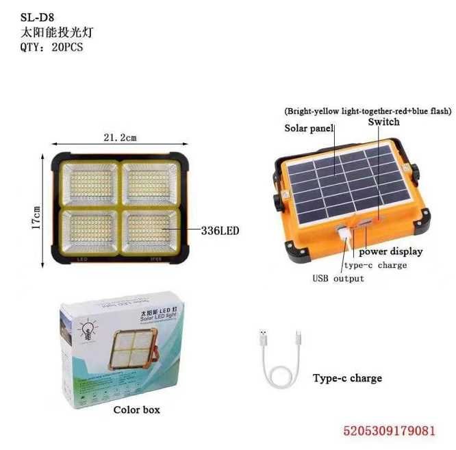 Επαναφορτιζόμενος προβολέας εργασίας με ηλιακό πάνελ - SL-D8 - 179081Επαναφορτιζόμενος προβολέας εργασίας με ηλιακό πάνελ – SL-D8 – 179081