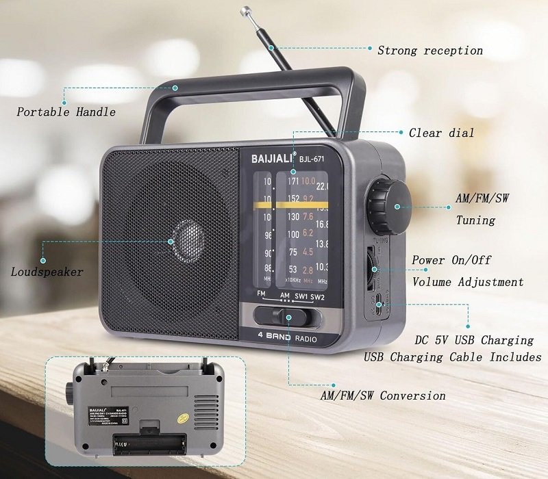 Φορητό επαναφορτιζόμενο ραδιόφωνο με δυνατό καθαρό ήχο, σε πρακτικό σχεδιασμό ιδανικό για εύκολη μεταφορά παντού.