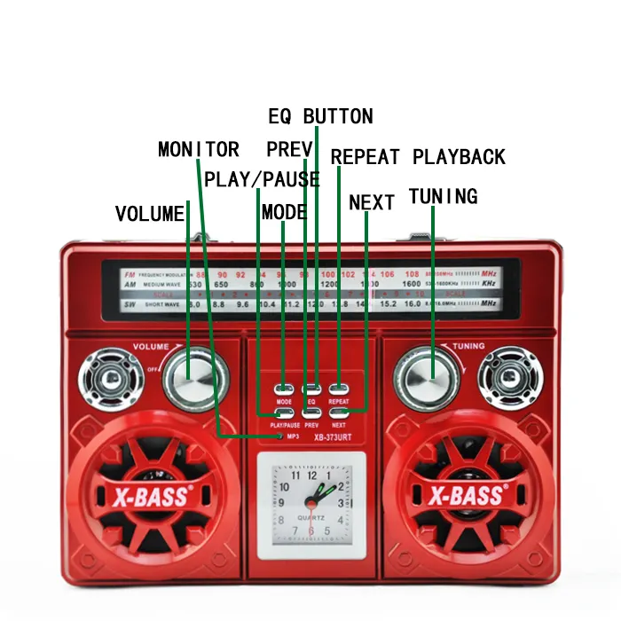 Επαναφορτιζόμενο ραδιόφωνο - XB373BT - Waxiba - 003736 - RedΕπαναφορτιζόμενο ραδιόφωνο – XB373BT – Waxiba – 003736 – Red