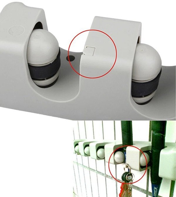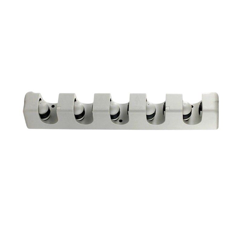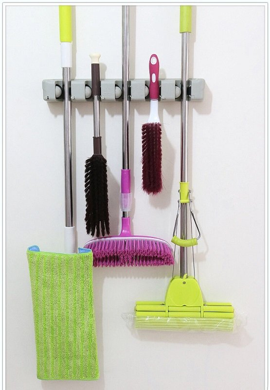 Επιτοίχια πλαστική βάση οργάνωσης για σκούπες και παντός τύπου εργαλεία με κοντάρι, με 5 θέσεις με προσαρμόσιμο μέγεθος και σταθερή στήριξη.