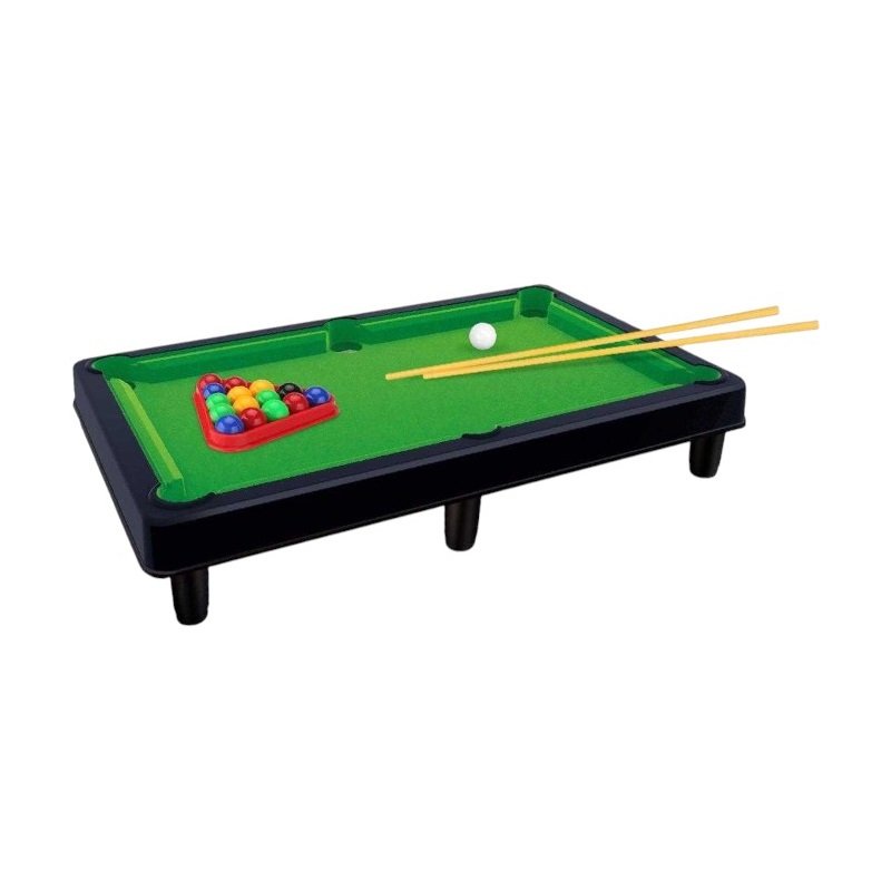 Επιτραπέζιο μπιλιάρδο mini, πλαστικό, με τσόχα, σε υπέροχο ρεαλιστικό σχεδιασμό, με 2 στέκες και πλήρες σετ αξεσουάρ, για τους μικρούς λάτρεις του αθλήματος.