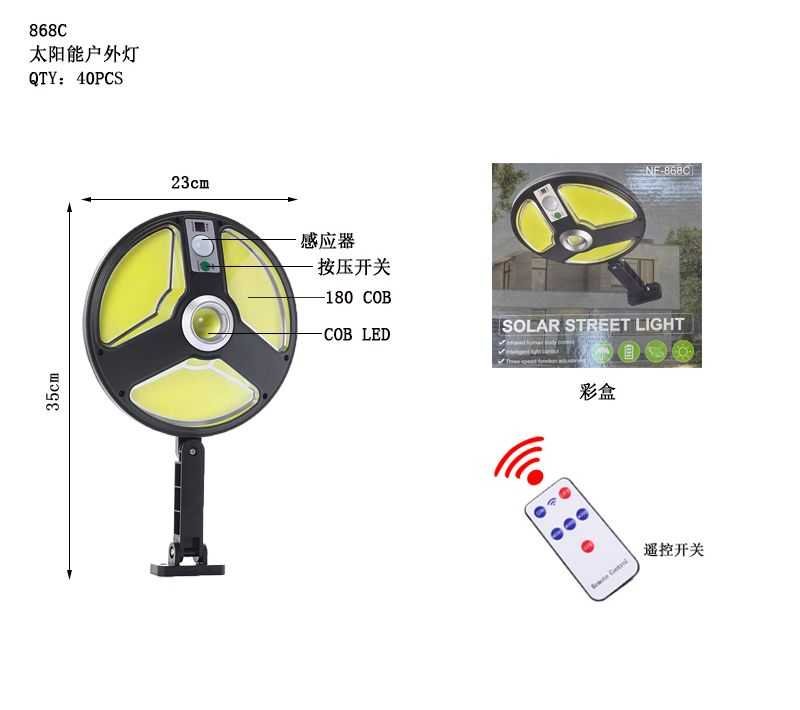 Ηλιακός προβολέας LED COB με πάνελ φόρτισης, αισθητήρα κίνησης και ισχυρό φωτισμό. Τοποθετείται χωρίς καλώδια και είναι ιδανικό για οικονομικό φωτισμό σε εξωτερικούς χώρους.