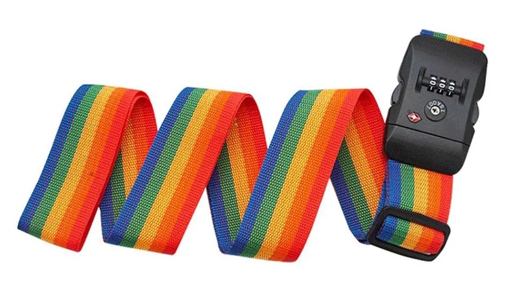 Ζώνη-ιμάντας ασφαλείας αποσκευών, σταυρωτός, με κωδικό ασφαλείας 3 ψηφίων και ρυθμιζόμενο μήκος.