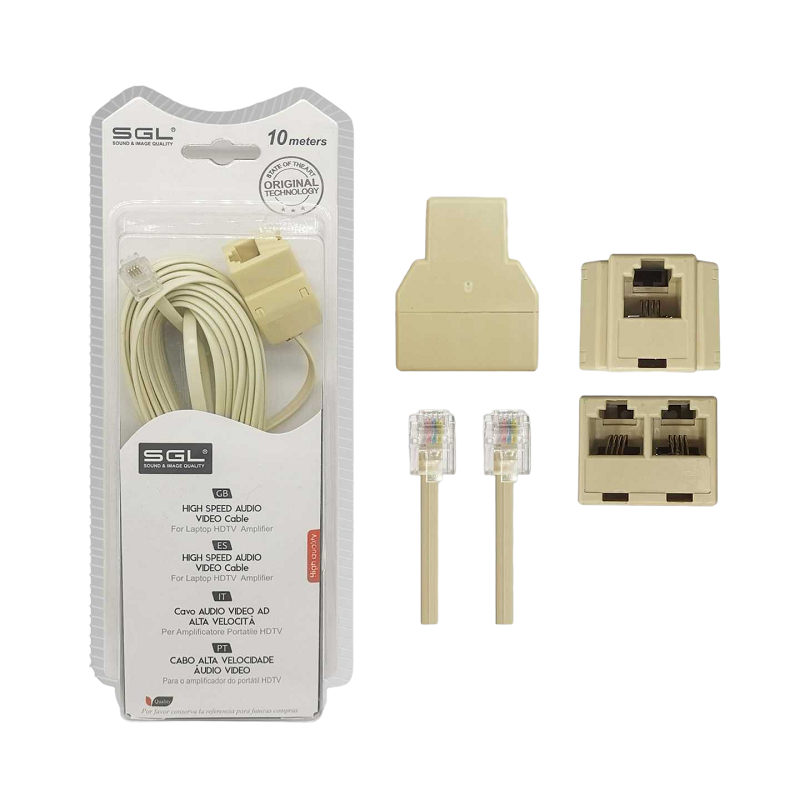 Καλώδιο γραμμής τηλεφώνου με διακλαδωτή - 6P4C1-2 - 10m - 097084Καλώδιο γραμμής τηλεφώνου με διακλαδωτή – 6P4C1-2 – 10m – 097084