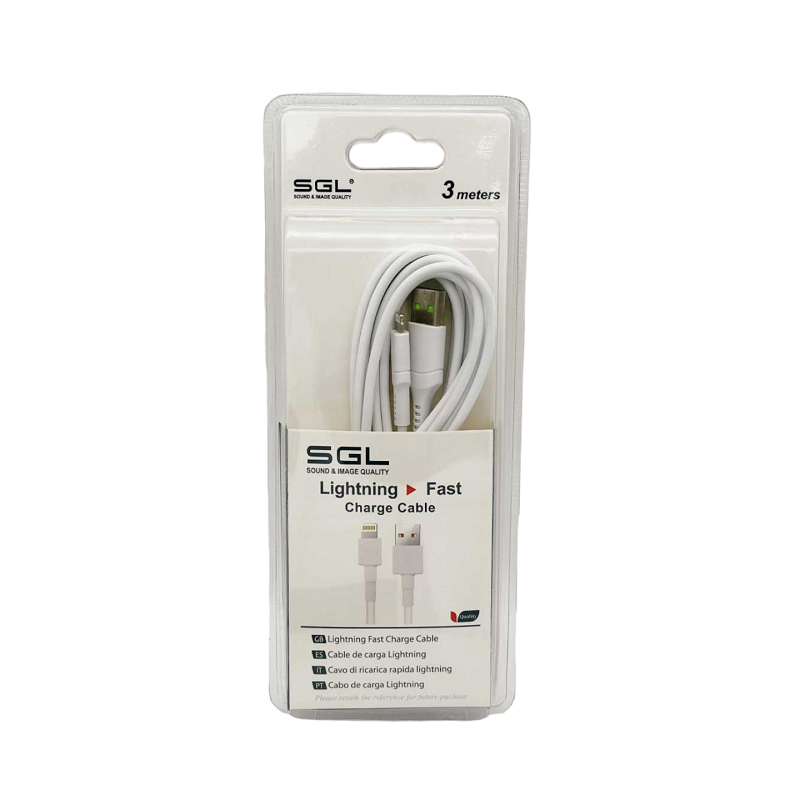 Καλώδιο φόρτισης Fast Charge & μεταφοράς δεδομένων – Lightning. Μήκος: 3m, Χρώμα: Λευκό.