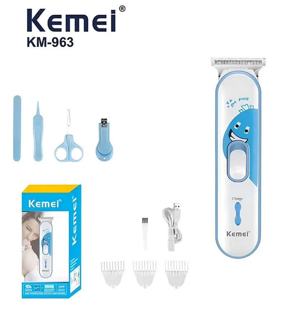 Η κουρευτική μηχανή Kemei KM-963 διαθέτει εργονομικό σχεδιασμό και πλήρες σετ περιποίησης. Ιδανική επιλογή για βρέφη και παιδιά με ασφαλή χρήση.