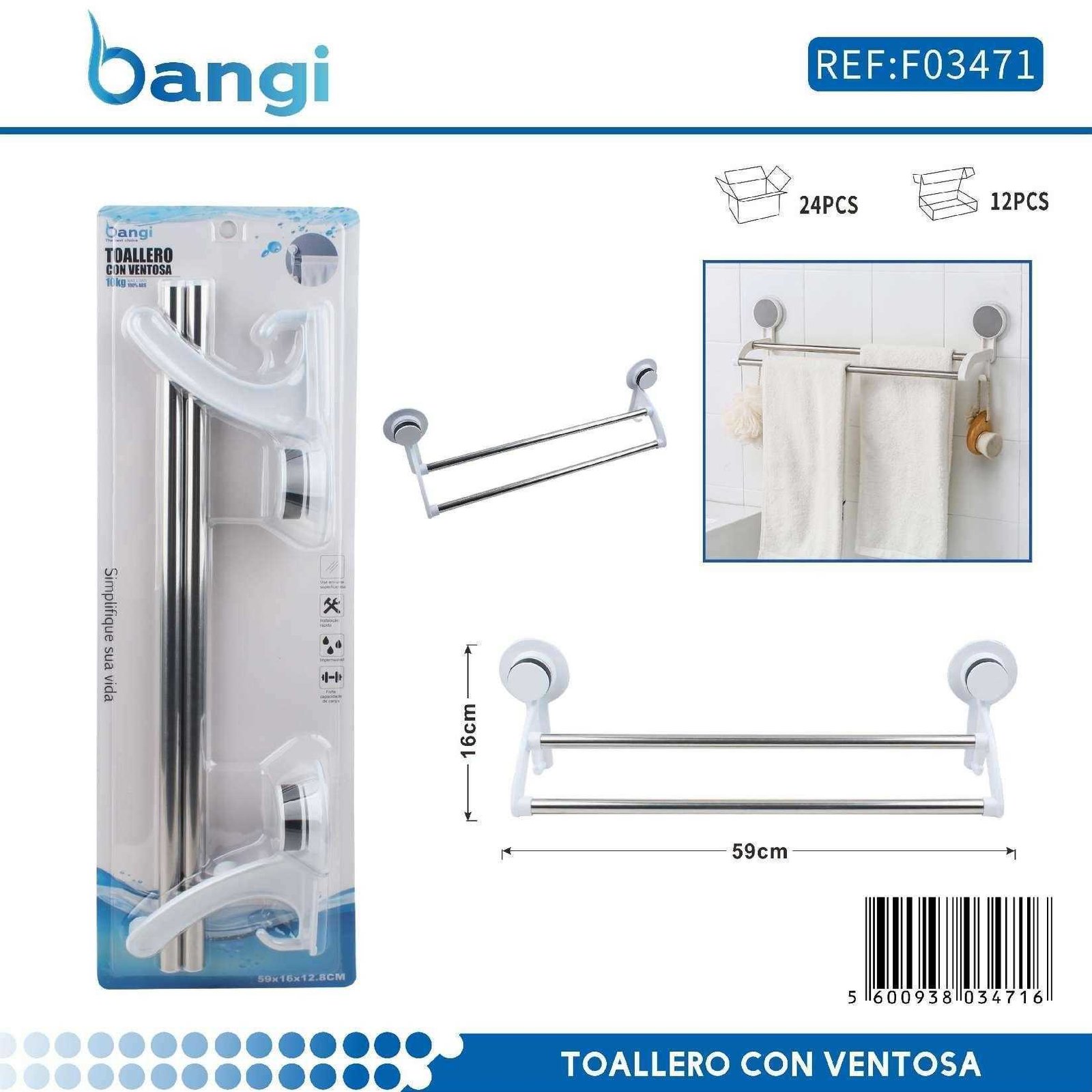 Κρεμάστρα πετσέτας μπάνιου διπλή ράγα με βεντούζες - 59cm - 03471Κρεμάστρα πετσέτας μπάνιου διπλή ράγα με βεντούζες – 59cm – 03471