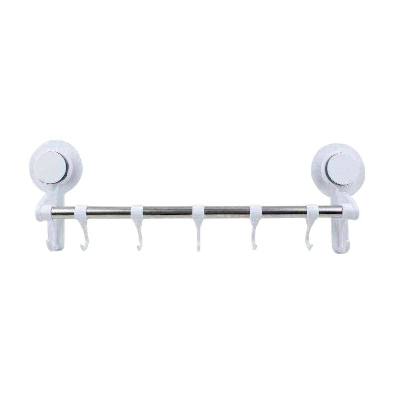 Κρεμάστρα πετσέτας μπάνιου με άγκιστρα κρεμάσματος ρυθμιζόμενης θέσης, με μεταλλική ράγα inox και πλαστικές βάσεις υψηλής ανθεκτικότητας. Εύκολη τοποθέτηση με ισχυρές βεντούζες, χωρίς να απαιτείται βίδωμα.