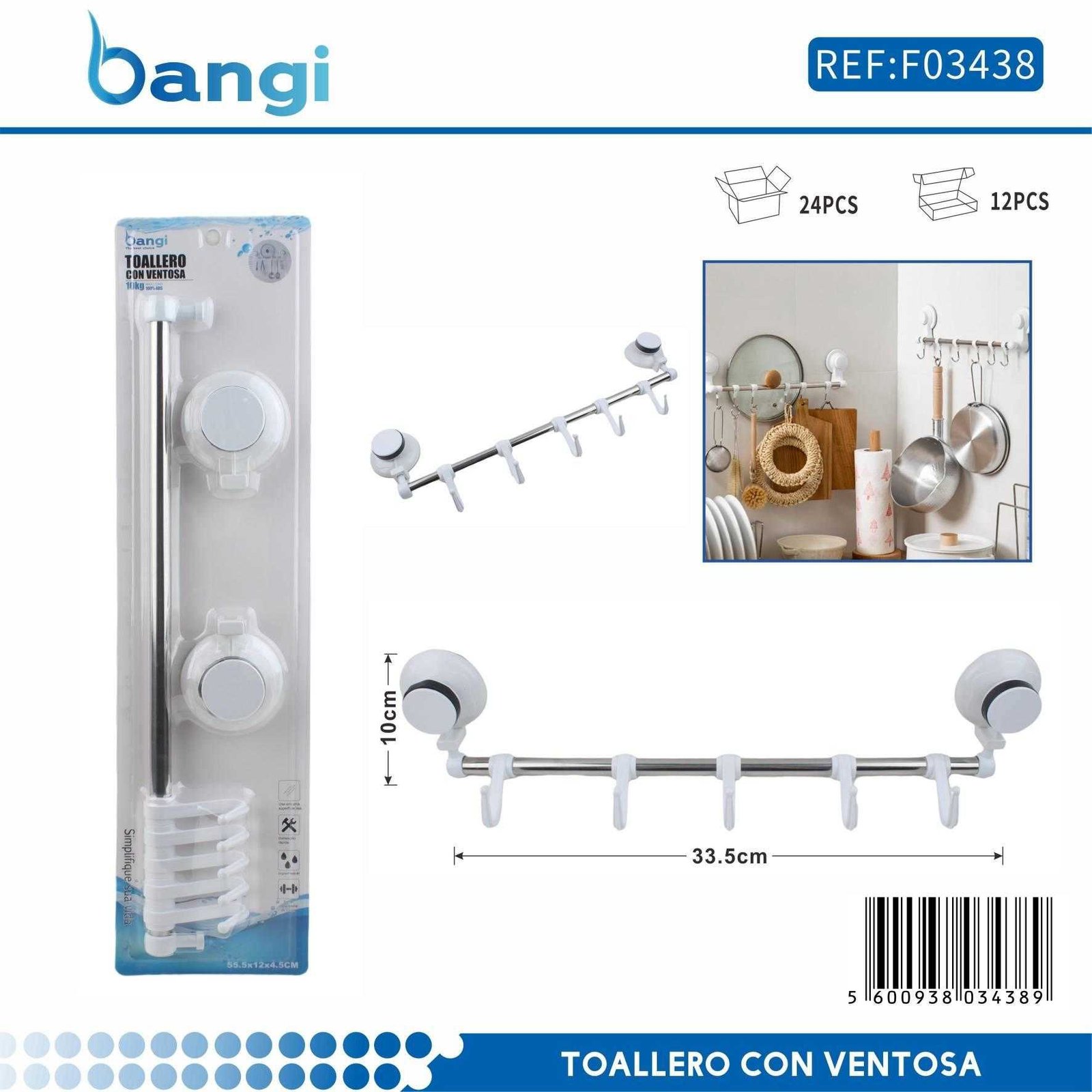 Κρεμάστρα πετσέτας μπάνιου ράγα με βεντούζες - 33.5cm - 03438Κρεμάστρα πετσέτας μπάνιου ράγα με βεντούζες – 33.5cm – 03438