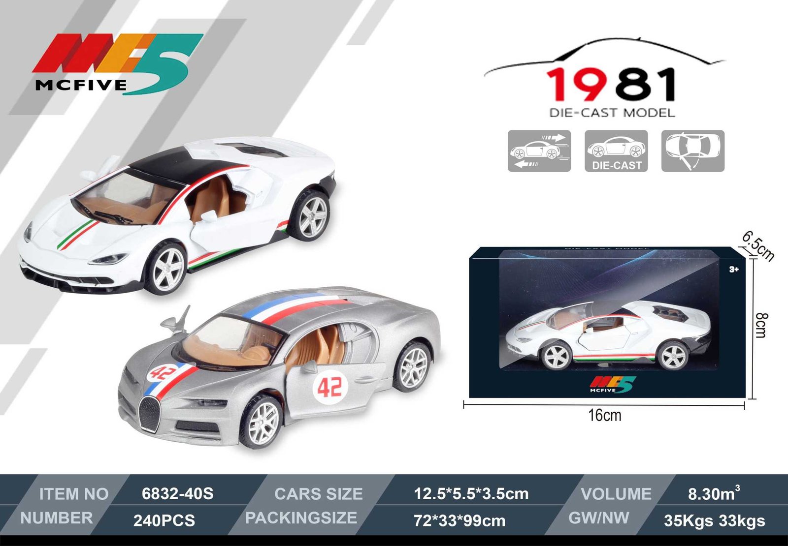 Διαστάσεις αυτοκινήτου: 12.5 x 5.5 x 3.5cm