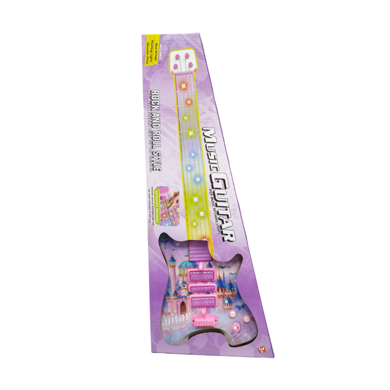 Παιδική ηλεκτρονική κιθάρα σε πανέμορφο πολύχρωμο σχεδιασμό, με φωτισμό και δυνατό ήχο, για να γίνεις μία αληθινή Ροκ Σταρ! Διαθέτει ρυθμιζόμενο λουράκι ώμου.