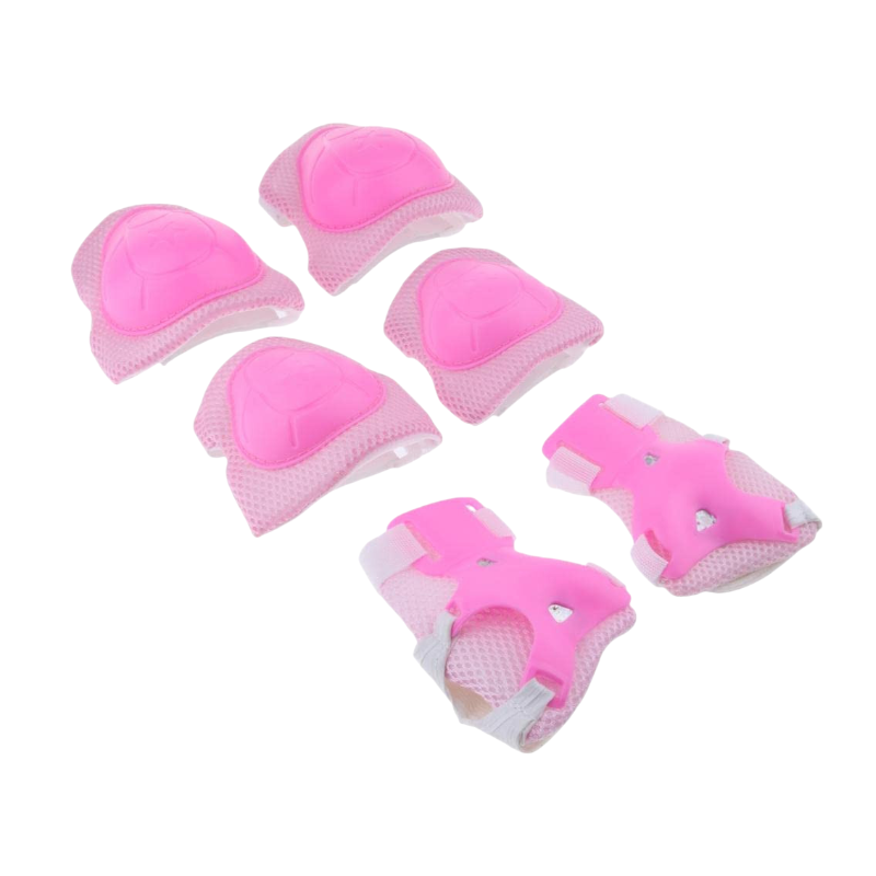 Πλήρες παιδικό σετ 6 τεμαχίων με προστατευτικά γονάτων, αγκώνων και καρπών, ιδανικό για κάθε είδους αθλητικές δραστηριότητες: ποδηλασία, skatebord, rollers, πατίνι, ομαδικά αθλήματα κτλ. Διαθέτουν σκληρό ανθεκτικό κάλυμμα που προστατεύει πλήρως από χτυπήματα και μαλακή εσωτερική επένδυση που απορροφά τους κραδασμούς και εφαρμόζει σταθερά και με άνεση, χωρίς ενοχλήσεις.