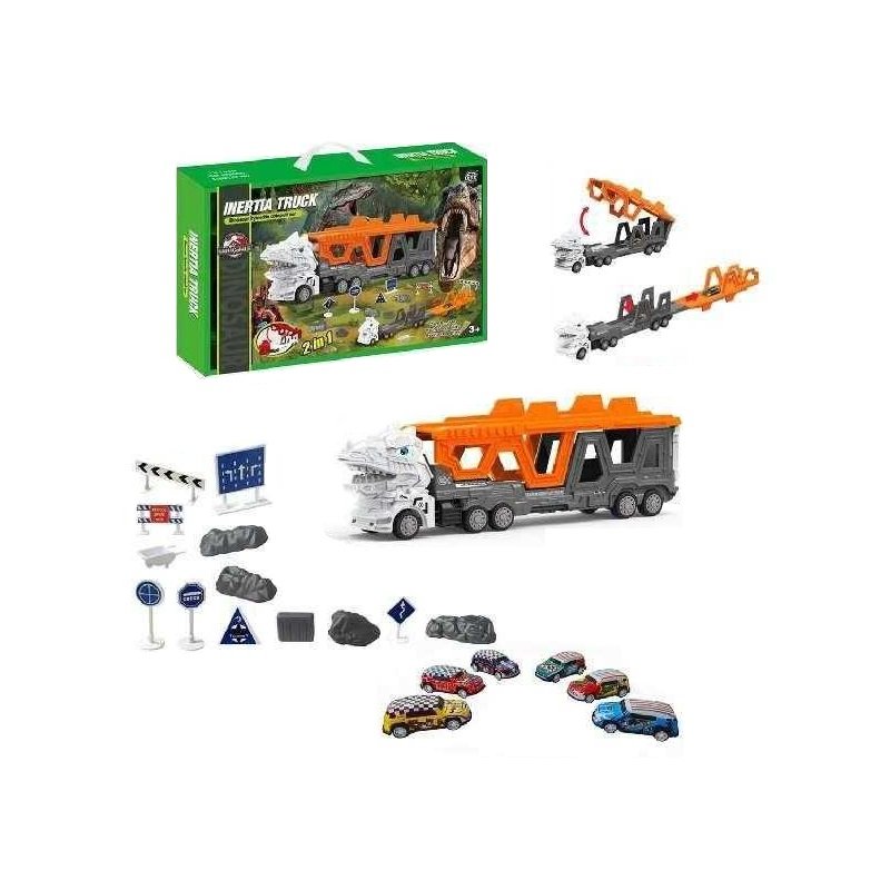 Παιδικό όχημα μεταφοράς αυτοκινήτων με υπέροχο σχεδιασμό Δεινόσαυρος που μετατρέπεται σε αυτοκινητόδρομο, πολλά αξεσουάρ και εξαιρετικά ανθεκτική κατασκευή, για ατελείωτο παιχνίδι!