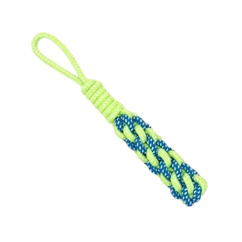 Παιχνίδι σκύλου σχοινί πλεκτό με λαβή, από ανθεκτικό, μη τοξικό πολυεστέρα, ιδανικό για παιχνίδια τραβήγματος/αντίστασης ενώ παράλληλα βοηθά στην υγιεινή στόματος του σκύλου σας καθώς καθαρίζει ήπια και απασχολεί τα δόντια του.