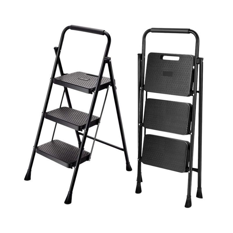Πτυσσόμενη σκάλα 3 σκαλιών, με στιβαρή σιδερένια κατασκευή, και εύκολη αποθήκευση.