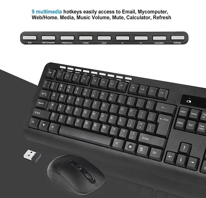 Σετ ασύρματο πληκτρολόγιο & ποντίκι με λεπτό κομψό σχεδιασμό, υψηλής απόδοσης και με άμεση ασύρματη σύνδεση Bluetooth για έυκολη χρήση χωρίς καλώδια. Ταχύτητα: 2,4 GHz, Πληκτρολόγιο 78 πλήκτρων, 9 Multimedia buttons, Απόσταση λειτουργίας: έως 10 μέτρα (χωρίς εμπόδιο), Μπαταρία: 1 * μπαταρία AAA για πληκτρολόγιο, 2 * μπαταρίες AAA για το ποντίκι (δεν περιλαμβάνονται), Τάση λειτουργίας πληκτρολογίου: 3V, Ρεύμα: 1,5ma, Ρύθμιση DPI 1000-1600, Μέγεθος πληκτρολογίου: 45*16*3cm, Βάρος πληκτρολογίου: 330g, Μέγεθος ποντικιού: 11,5*6*4cm, Βάρος ποντικιού: 58g, Διαστάσεις συσκευασίας: 52.5*17*4cm.