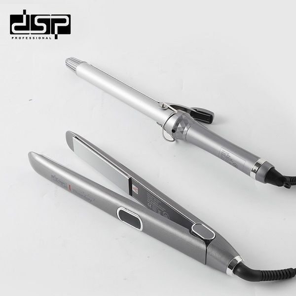 Ανακαλύψτε το σετ περιποίησης μαλλιών της DSP με ισιωτική και μπουκλιέρα για άψογα ίσα ή σγουρά μαλλιά. Η τεχνολογία τουρμαλίνης προστατεύει τα μαλλιά σας από φθορές και σπασίματα.