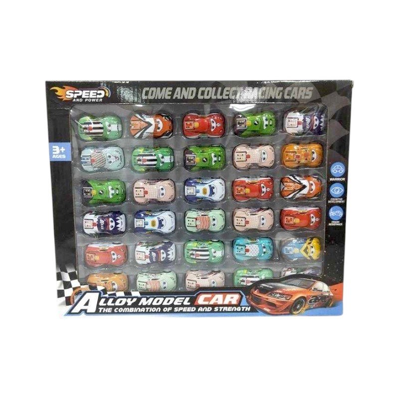 Aυτοκινητάκια, σετ 30 τεμαχίων, σε διάφορα πολύχρωμα σχέδια και ποικιλία σχεδιασμού, με Pull Back.