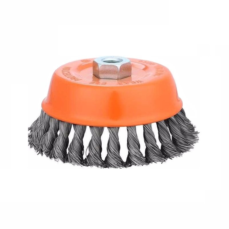 Συρματόβουρτσα καμπάνα στριφτή, μεγέθους 5″/125mm, με σιδερένια δόντια.