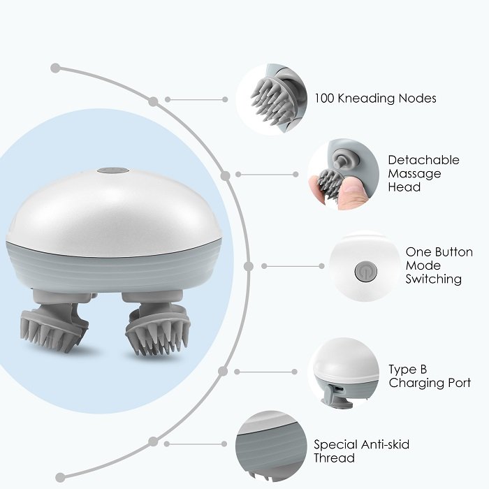 Ανακαλύψτε τη συσκευή μασάζ κεφαλής με 4 μαλακά άκρα σιλικόνης. Βελτιώνει την κυκλοφορία του αίματος, ανακουφίζει από πονοκεφάλους κι ενισχύει την ανάπτυξη των μαλλιών.