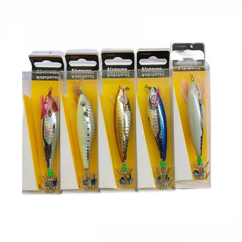 Ανακαλύψτε την καλαμαριέρα Tradesor, ιδανική για ψάρεμα καλαμαριού. Με ρεαλιστική εμφάνιση και φυσική κίνηση στο νερό, εγγυάται αποτελεσματικότητα. Διαθέσιμη σε ποικιλία χρωμάτων, εξασφαλίστε τη μεγαλύτερη αλίευση.