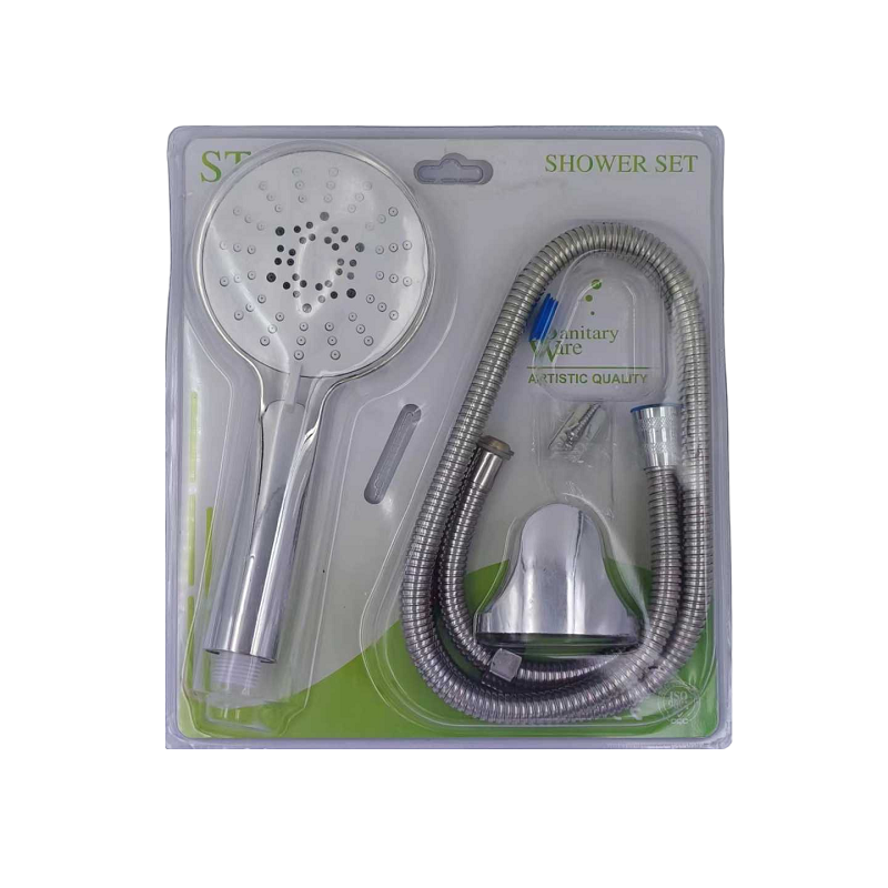 Τηλέφωνο-ακροφύσιο ντουζιέρας με 3 επιλογές πίεσης και σπιράλ σωλήνα μήκους 1.5 μέτρου, με επιτοίχια βάση και όλα τα παρελκόμενα τοποθέτησης.
