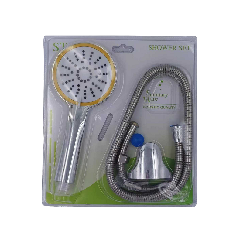 Τηλέφωνο-ακροφύσιο ντουζιέρας με 3 επιλογές πίεσης και σπιράλ σωλήνα μήκους 1.5 μέτρου, με επιτοίχια βάση και όλα τα παρελκόμενα τοποθέτησης.
