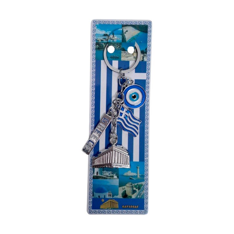 Τουριστικό μπρελόκ Souvenir Greece, κατασκευασμένο από ανοξείδωτο ατσάλι και υψηλής ποιότητας υλικά, με εντυπωσιακά ανάγλυφα σχέδια που αντιπροσωπεύουν την Ελλάδα.    Πακέτο 12 τεμαχίων.   Μήκος: περ. 12cm.