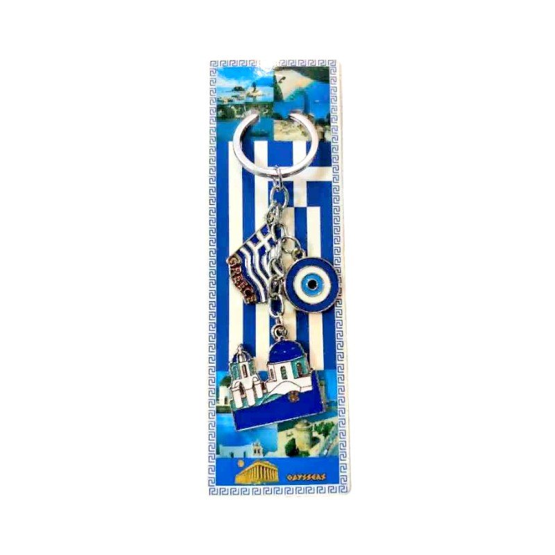Τουριστικό μπρελόκ Souvenir Greece, κατασκευασμένο από ανοξείδωτο ατσάλι και υψηλής ποιότητας υλικά, με εντυπωσιακά ανάγλυφα σχέδια που αντιπροσωπεύουν την Ελλάδα.    Πακέτο 12 τεμαχίων.   Μήκος: περ. 12cm.