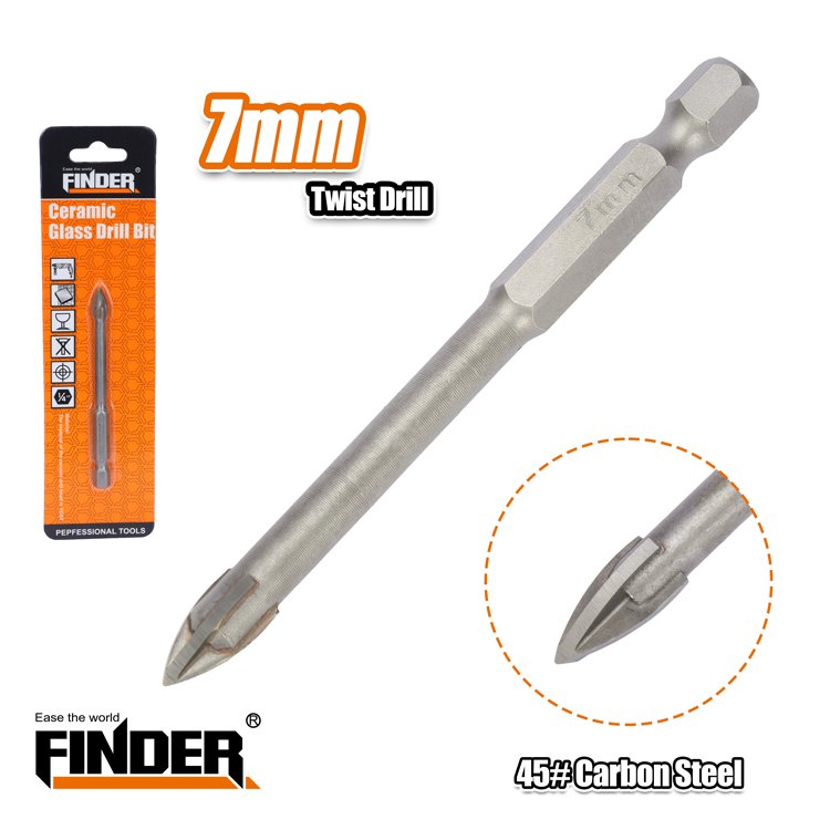 Τρυπάνι τετράκοπο γυαλιού και πλακιδίων της Finder, κατασκευασμένο από ατσάλι #45 Carbon Steel. Μέγεθος: 7mm.