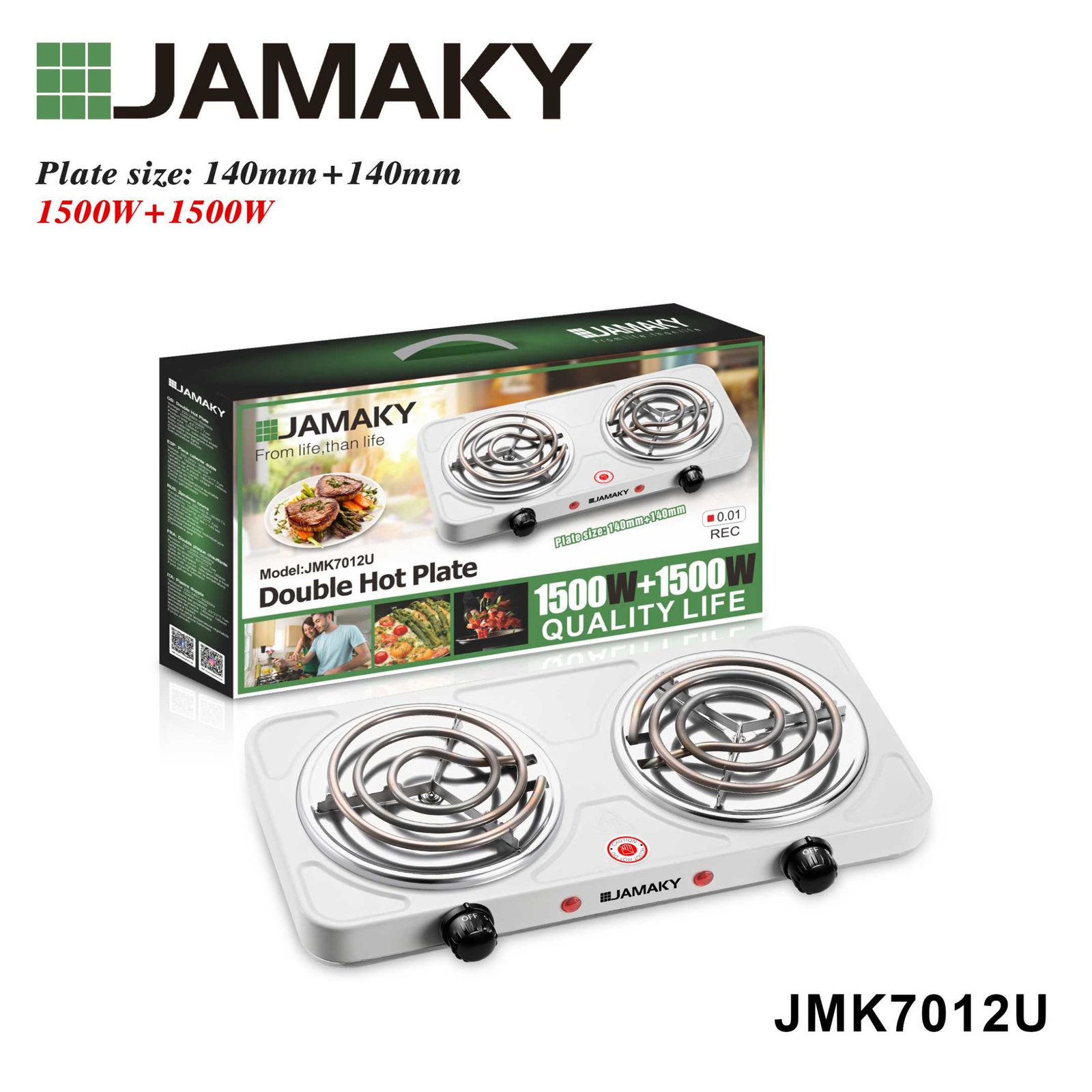 Ανακαλύψτε την έξυπνη διπλή φορητή ηλεκτρική εστία JMK7012U από την Jamaky. Ιδανική για τηγάνισμα, ψήσιμο και βράσιμο με ρυθμιζόμενη θερμοκρασία και άμεση θέρμανση, για ταχεία και γρήγορη μαγειρική.
