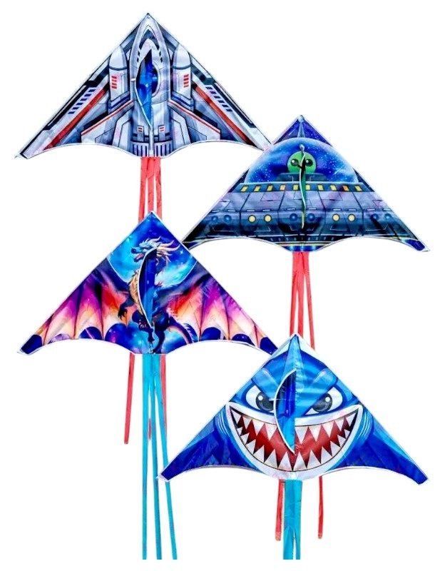 Χαρταετός με εντυπωσιακό σχέδιο και ουρά.    Κατασκευασμένος από ανθεκτικό πολυεστερικό ύφασμα υψηλής ποιότητας, ελαφρύς και εύκολος στον χειρισμό.