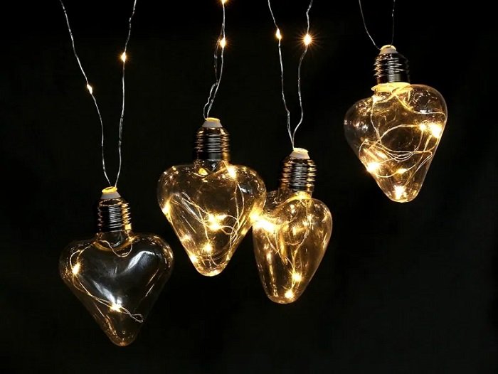 Χριστουγεννιάτικα διακοσμητικά φώτα σειρά Καρδούλα, μήκους 4m, με 10 λαμπτήρες LED και με χρώμα φωτισμού θερμό λευκό.