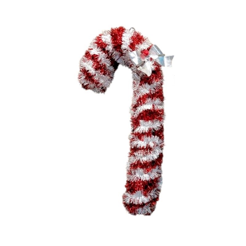 Χριστουγεννιάτικο στολίδι Γλειφιτζούρι μπαστούνι, μεγέθους 15x19cm, με επένδυση από πολύχρωμη γιρλάντα.