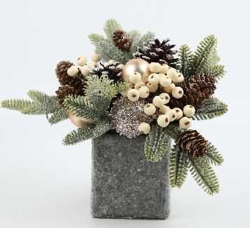 Χριστουγεννιάτικο διακοσμητικό δεντράκι με επιτραπέζια βάση και εντυπωσιακή σύνθεση με στολίδια και υπέροχες ρεαλιστικές λεπτομέρειες. Ύψος: 25cm.