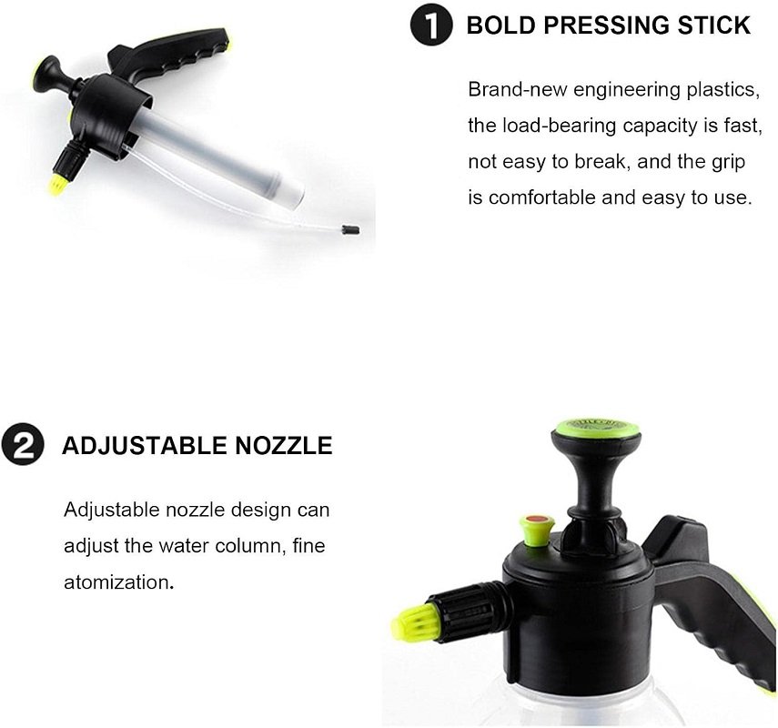 Ψεκαστήρας πίεσης 2 λίτρων, με ακροφύσιο ψεκασμού ορείχαλκου και βαλβίδα ασφαλείας. Περιστρεφόμενη κεφαλή 2 λειτουργιών ψεκασμού και τεχνολογία αποσυμπίεσης. Κατάλληλο για επαγγελματική χρήση. Διαστάσεις: 35 x 13cm.