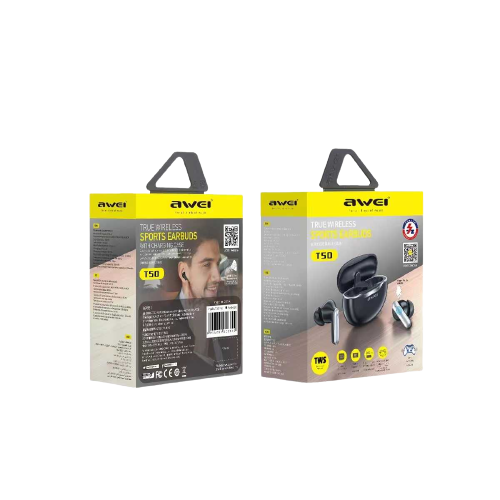 Τα Awei T50 διαθέτουν τεχνολογία Noise Cancelling, εργονομικό σχεδιασμό και Bluetooth 5.3 για σταθερή σύνδεση.