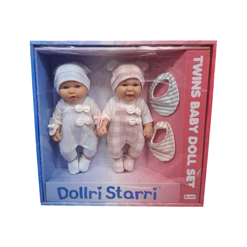 Ανακαλύψτε το Σετ κούκλες μωρά Twins με ήχο και αξεσουάρ φροντίδας. Ιδανικό για μικρούς φροντιστές που αγαπούν να παίζουν ρόλους. Κατάλληλο για παιδιά από 3 ετών.