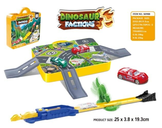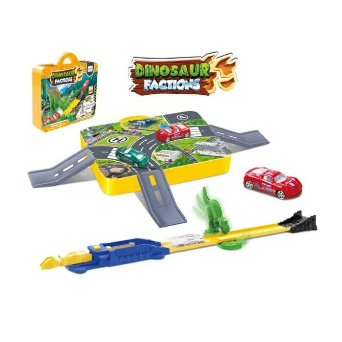 Ανακαλύψτε το βαλιτσάκι αυτοκινητόδρομος με θέμα δεινοσαύρων, ιδανικό για την ανάπτυξη της φαντασίας των παιδιών. Ασφαλές και έτοιμο προς χρήση!