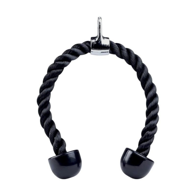 Το σχοινί τροχαλίας για εκγύμναση τρικεφάλων είναι το ιδανικό εργαλείο για την ενδυνάμωση των χεριών σας, αλλά και για πολλές άλλες ασκήσεις που αφορούν τους ώμους και την πλάτη. Κατασκευασμένο από πυκνές υφαντές ίνες νάιλον, προσφέρει μέγιστη ανθεκτικότητα και αξιοπιστία κατά τη διάρκεια της προπόνησής σας. Οι λαβές του είναι φτιαγμένες από καουτσούκ, παρέχοντας σταθερό και αντιολισθητικό κράτημα για ασφαλή χρήση. Η κεφαλή κρεμάσματος είναι ατσάλινη, εξασφαλίζοντας επιπλέον αντοχή και διάρκεια.