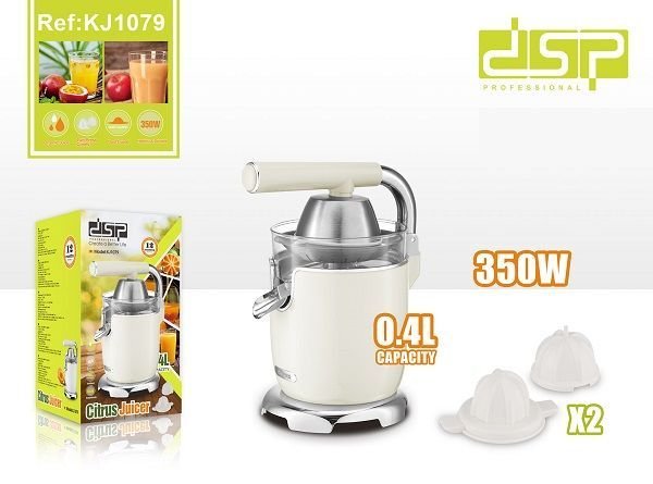 Ανακαλύψτε τον ηλεκτρικό στίφτη KJ1079 της DSP. Ιδανικός για γρήγορους και υγιεινούς χυμούς. Δύο κώνους για όλα τα φρούτα, εύκολη χρήση και καθαρισμός.