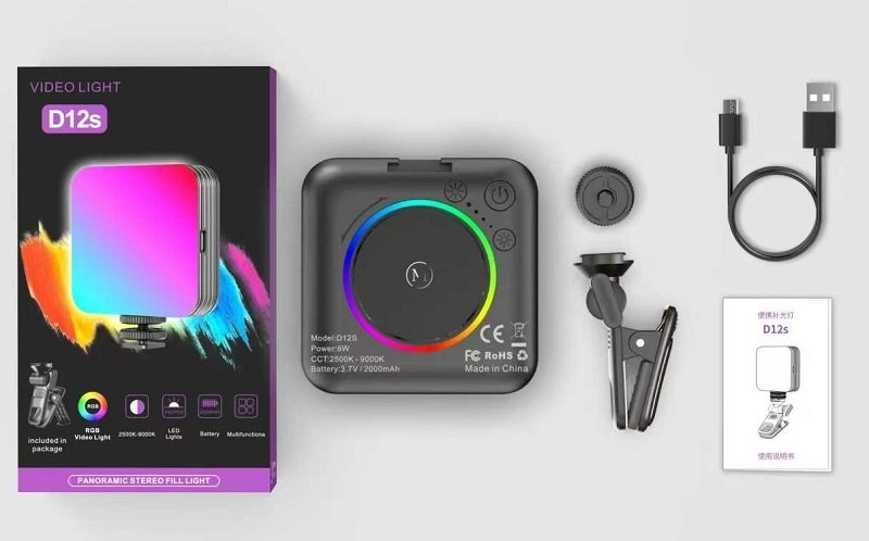 Ανακαλύψτε τον επαναφορτιζόμενο φακό κάμερας LED D12S με 73 λυχνίες για υψηλή φωτεινότητα και έλεγχο χρωμάτων RGB. Ιδανικός για φωτογράφηση και βιντεοσκόπηση, προσφέρει επαγγελματικά αποτελέσματα.