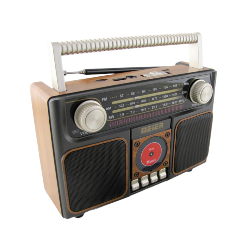 Ανακαλύψτε το Επαναφορτιζόμενο Ραδιόφωνο Retro MD-1306 BT. Ιδανικό για μουσική παντού με υψηλή ποιότητα ήχου, αναλογικό Tuner & Bluetooth. Ιδανικό για Vintage λάτρεις!