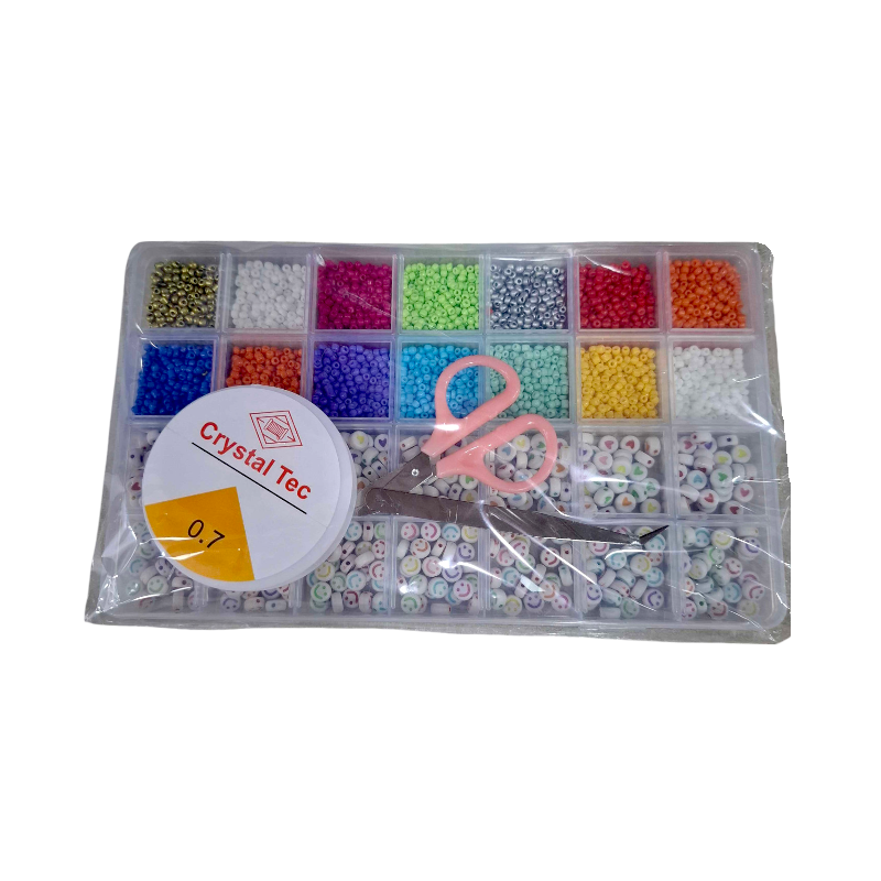 - Περιλαμβάνει ποικιλία χρωμάτων και σχεδίων χαντρών.