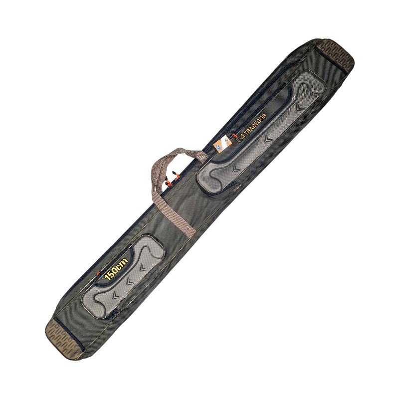 Η θήκη μεταφοράς καλαμιού ψαρέματος 150cm προσφέρει την ιδανική λύση για την ασφαλή και οργανωμένη μεταφορά του εξοπλισμού σας. Κατασκευασμένη από ύφασμα NYLON Oxford 600D, γνωστό για την εξαιρετική αντοχή του σε φθορές και σκισίματα, εξασφαλίζει μέγιστη προστασία. Διαθέτει διπλή θήκη για τα καλάμια και δύο εξωτερικές τσέπες με φερμουάρ για μικροαντικείμενα. Οι ενισχυμένες χειρολαβές και το ρυθμιζόμενο λουρί πλάτης προσφέρουν άνεση στη μεταφορά.